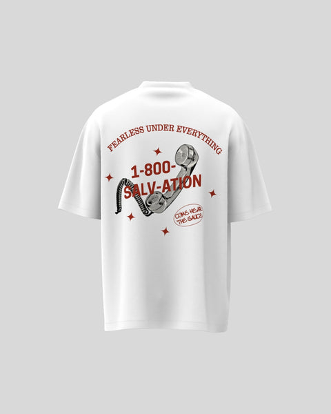 This tee is a casual, oversized white t-shirt designed for a bold streetwear look. It features a statement graphic on the back, making it a standout piece for anyone wanting to express an urban, expressive style.