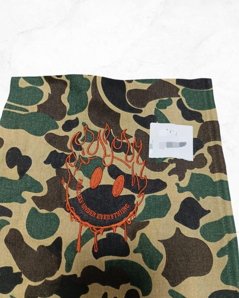 Edgerunner cargos feature a bold camouflage print, distinctive flame smiley branding, and functional cargo pockets—delivering standout style, comfort, and durability for urban streetwear looks